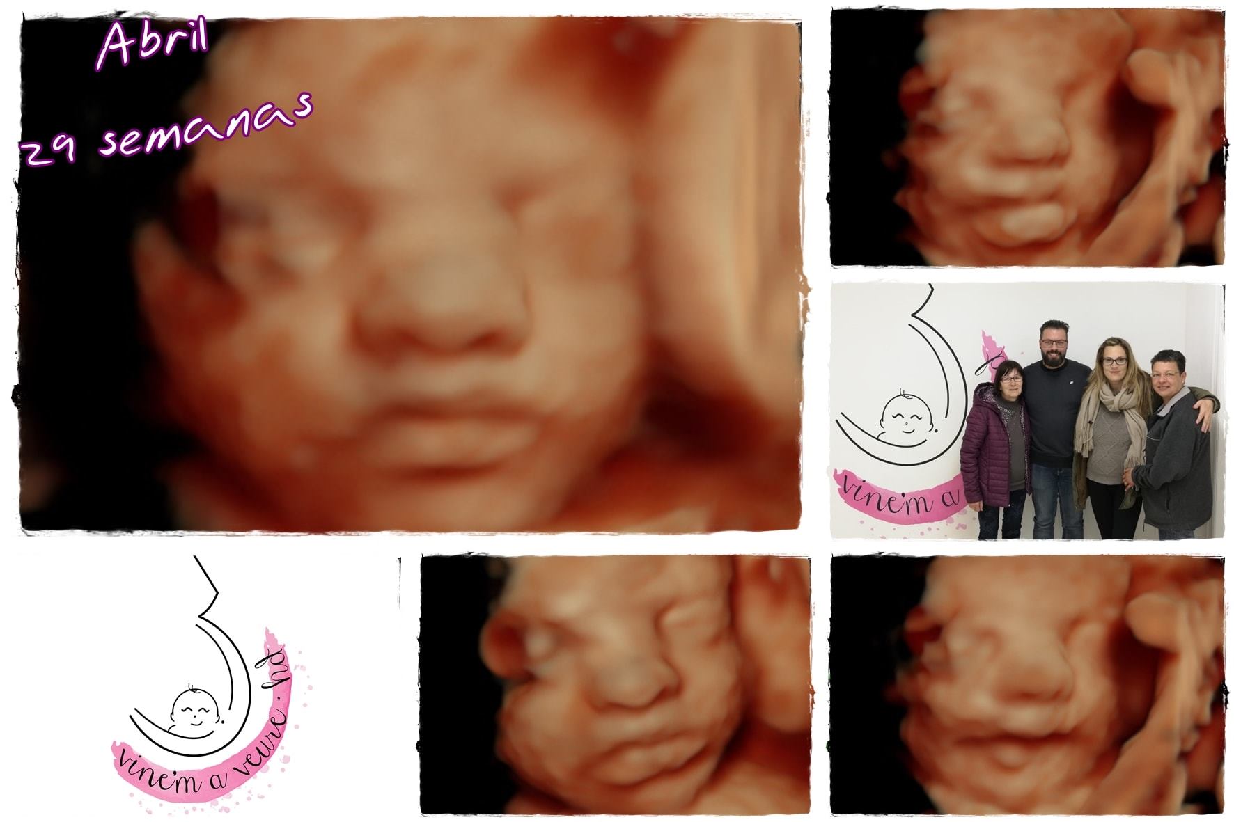 Cada vez más gordito, sus rasgos faciales son ya casi iguales al momento del nacimiento · Cada vez tiene menos espacio, por lo que le veremos cada vez más apretadito.
